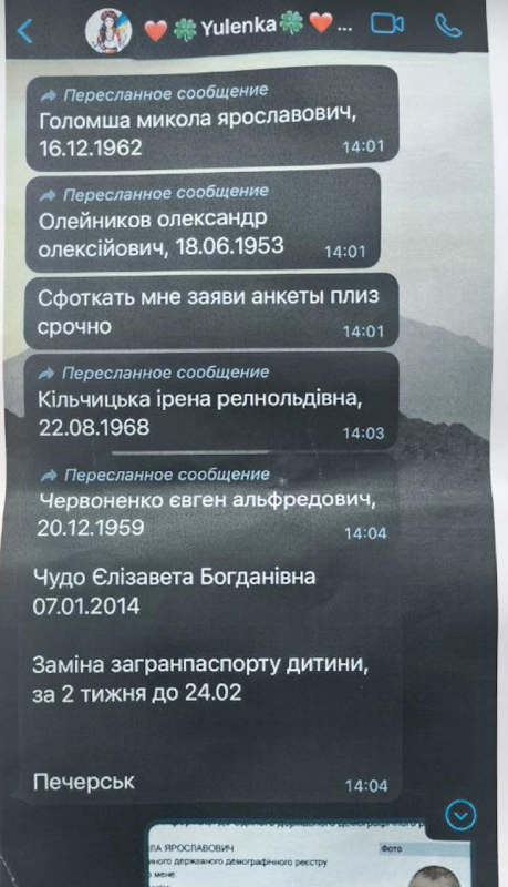 Окремо діяли механізми з підробленими заявами про виїзд на постійне проживання за кордон. Документи оформлювали «заднім числом» — за 2019 чи 2020 рік. За 8 тис. доларів клієнтам гарантували повний супровід через відповідні структури, зокрема ТЦК, після чого особа офіційно знімалася з обліку й могла виїхати за межі країни.